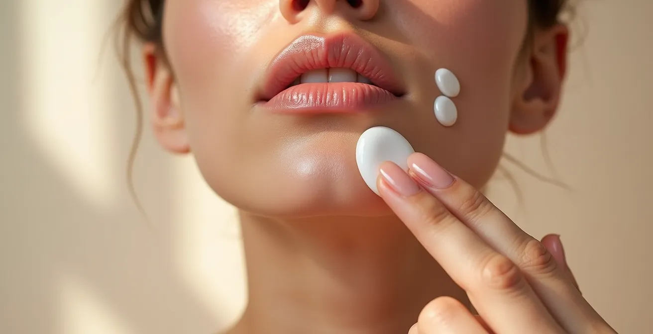 Cette image illustre parfaitement la juste dose. Pensez à votre visage comme à un mur que vous préparez avant de le peindre. Vous n’appliquez qu’une très fine couche d’enduit pour combler les fissures, pas une épaisse couche de plâtre. L’excès de matière crée une instabilité qui mène inévitablement à la « rupture de film », un phénomène où les différentes couches de produits se dissocient au lieu de fusionner.